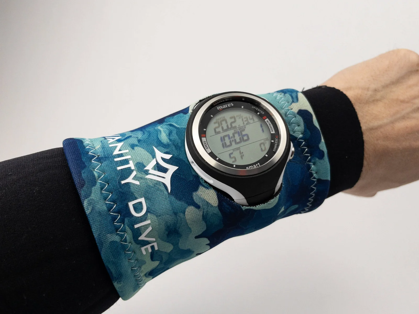 • Materiales: Hecha de neopreno flexible de 2 mm, lo que le permite ajustarse perfectamente a tu muñeca y mantener el ordenador seguro durante tus inmersiones.