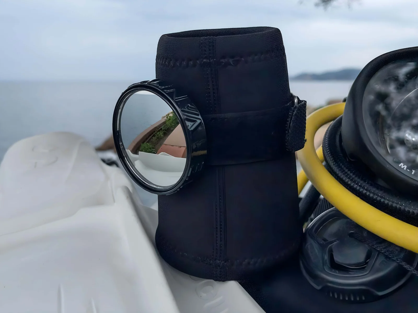 La Neoprene Wristband Pro Black es el accesorio perfecto para buceadores que buscan protección, funcionalidad y seguridad. Diseñada con materiales de alta calidad y un exclusivo espejo convexo patentado, esta muñequera te permite tener mayor control y visión de tu entorno submarino, todo con un diseño minimalista en color negro que combina estilo y practicidad.
