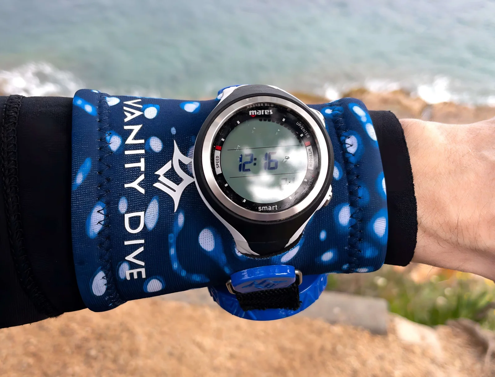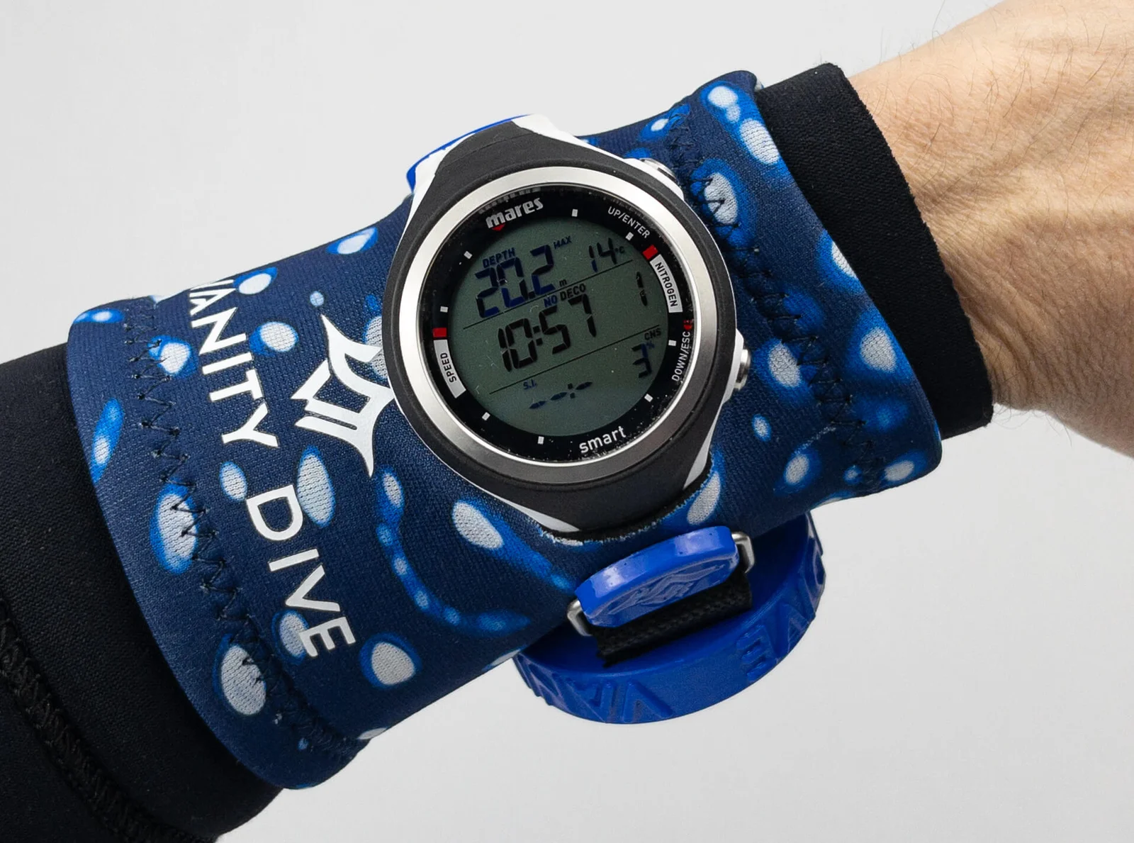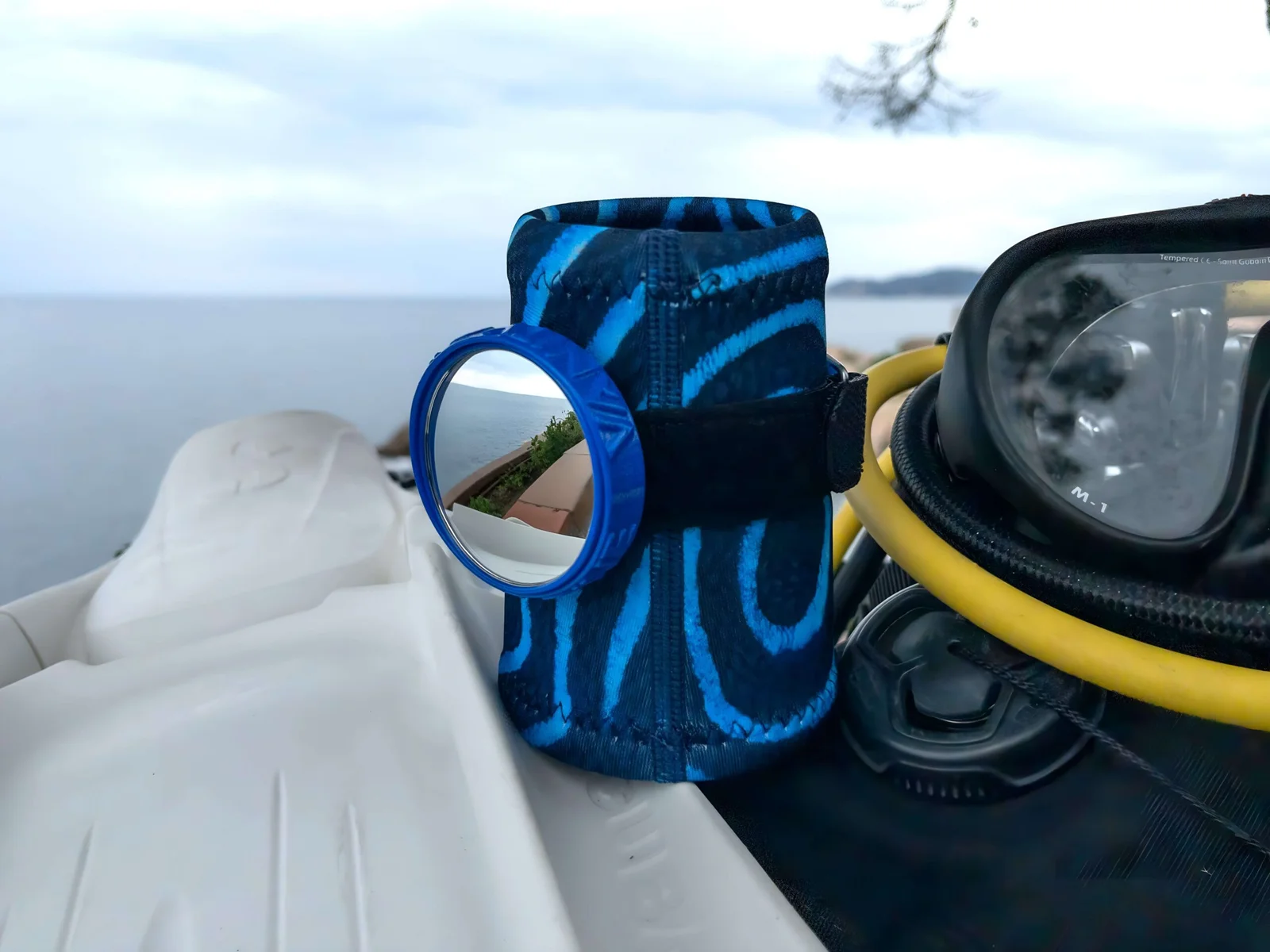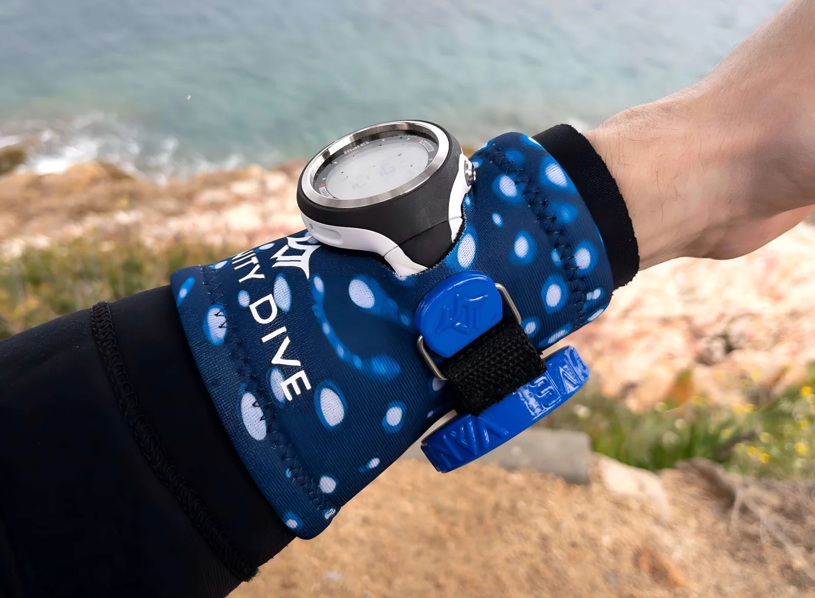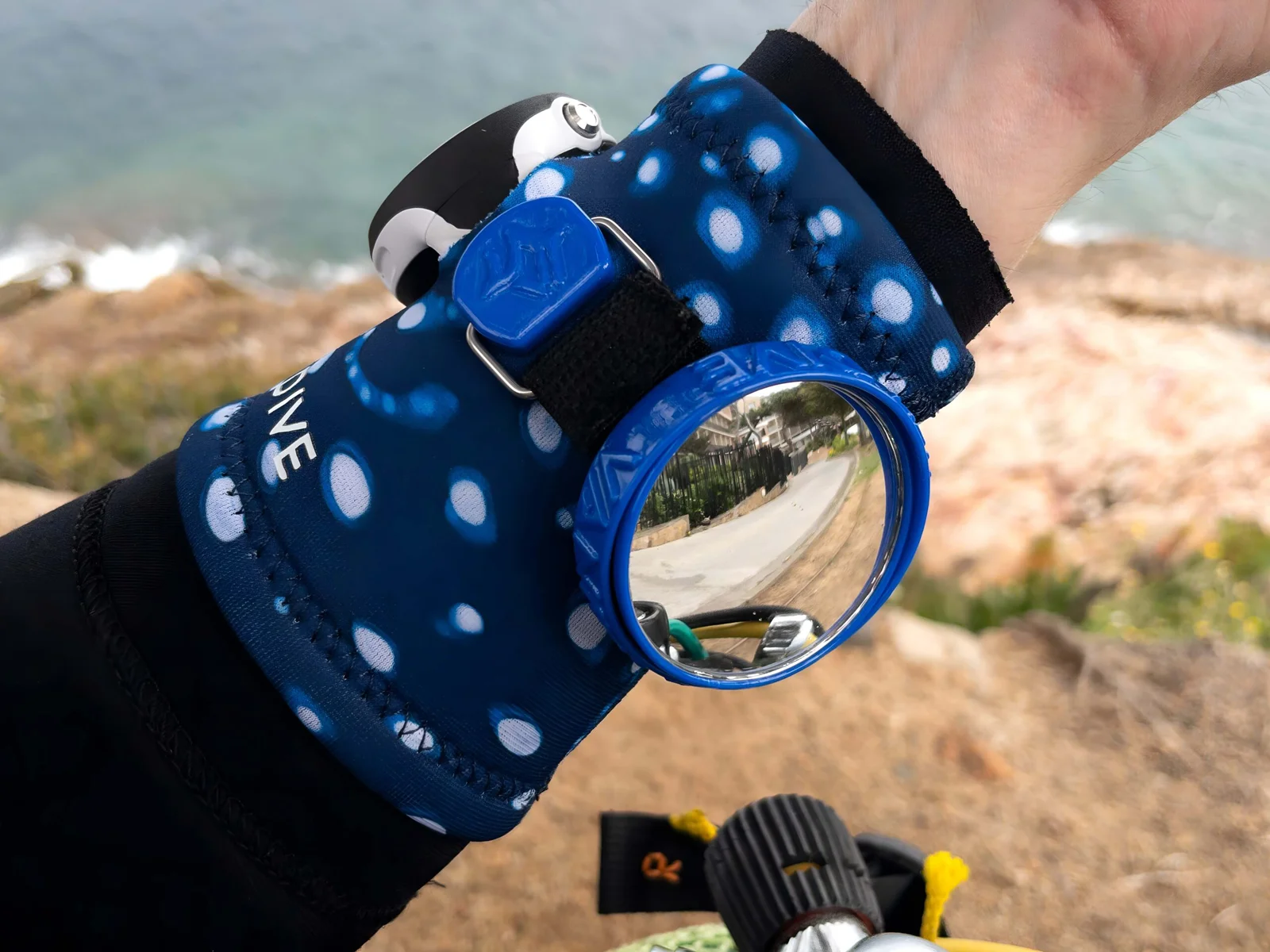 La Neoprene Wristband Pro Camo Ocean diseñada para buceadores que buscan seguridad y estilo, esta muñequera combina un exclusivo patrón de camuflaje marino con un espejo convexo patentado. Ofrece visión ampliada, ajustes personalizables y máxima durabilidad gracias a sus materiales resistentes al agua salada y los rayos UV. Ideal para buceo recreativo, técnico y apnea.
